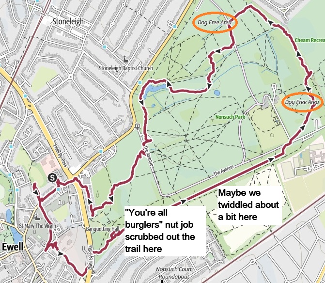 | rs2555 | 5 Jan ’25 | Wurzel | Portsmouth Road car park, Cobham | The Fairmile | Trail 2555 |