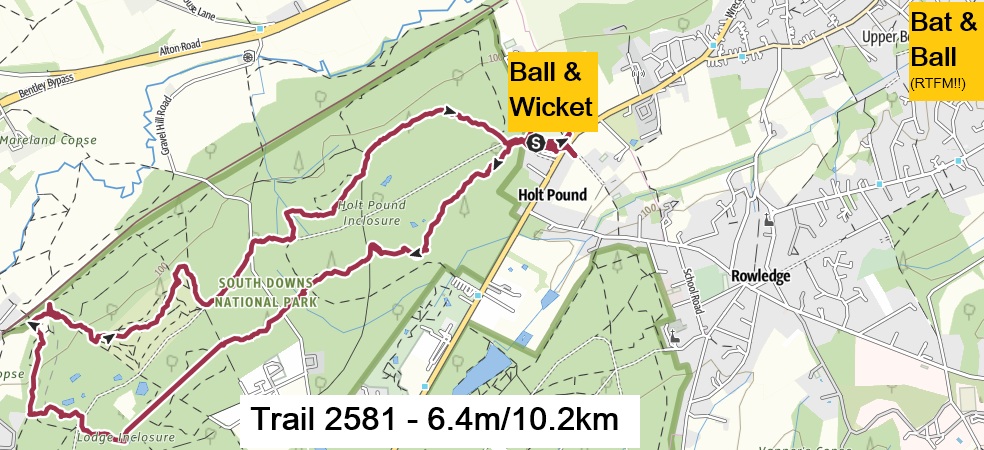 | rs2581 | 13 Jul ’25 | Missing In Action & Bigfoot | The Ball & Wicket, Holt Pound | Ball and Wicket Pub | Trail 2581 |