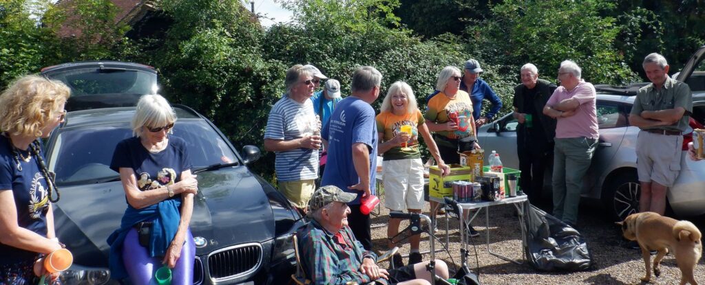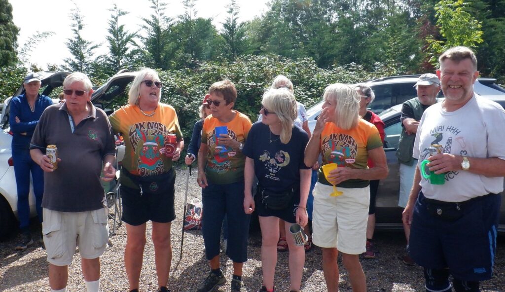 As to the RA’s circle delivery, I can tell you little.  That took longer than the run itself.  So long, in fact, that it had to be carried out over three sittings with more down downs than there were hashers.  The JM got Bolshy and refused to pour any more, and the stand in JM ran out of beer.  Fortunately the car park was surrounded by brambles so many took the opportunity to do a bit of cropping for the Sunday dinner B & A crumble dessert as a diversion.  That J Arthur at least should know better.