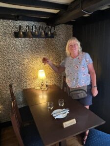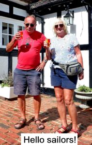 On east over the Rusper Road.  Here, the trail continued on the other side into less hashed country.  North through more fields, past a bit of water made picturesque by paddle board mounted Diana, and so back to the pub.  I must admit that I did not do the bit over the road.  Each of my legs has to take about six steps for every pace any two legged hasher takes.  And I’ve got four of them. That means I would take 225,280 steps over a four mile trail.  Puts all these FitBit posers to shame doesn’t it?  The long and the short, particularly the latter, is that I sometimes feel justified in taking an alternative route.  Yes, I can cadge a lift under my Associate’s arm but it is smelly and one has one’s pride.