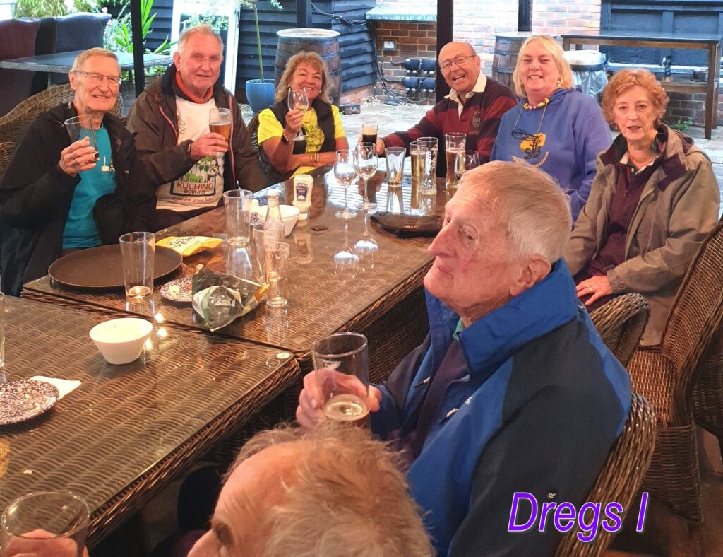 We then all headed off to the Pub ‘The Refectory’, with the exception of Head Boy, whose car was stuck in the Mud! The Pub was a large affair with lots of folks enjoying Sunday lunch. We, however were situated in a large tent in the garden, which was warm enough, and most of the hash were able to squeeze around a large table making for a convivial Atmosphere. All in all an excellent event!