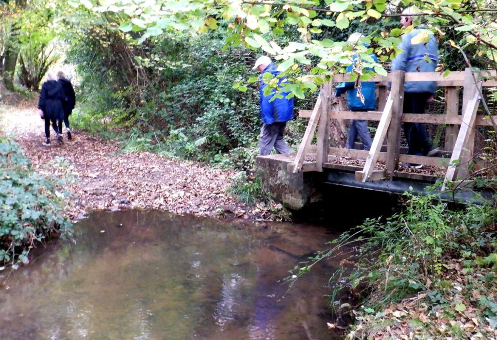 The run ran through pleasant mixed countryside with plenty of marks. The walking group, of which I was a member, stayed pretty much together, with the exception of Wasser, who clearly knew the area. The checks seemed to do their job pretty well and I remember the front runners coming thru the walkers several times. Then, to everyone’s great delight we came upon the drinks stop, again with the pack coming in pretty much together. Well done hares! The drinks were unidentifiable, but tasted wonderful. My first taste of booze with gold leaf inside!