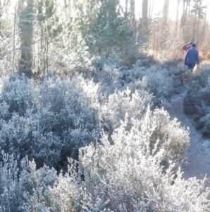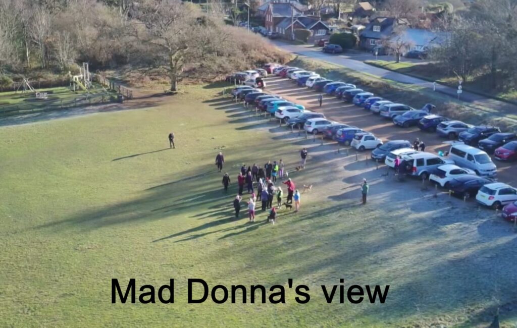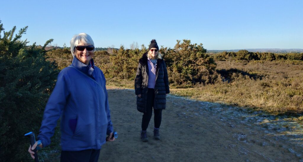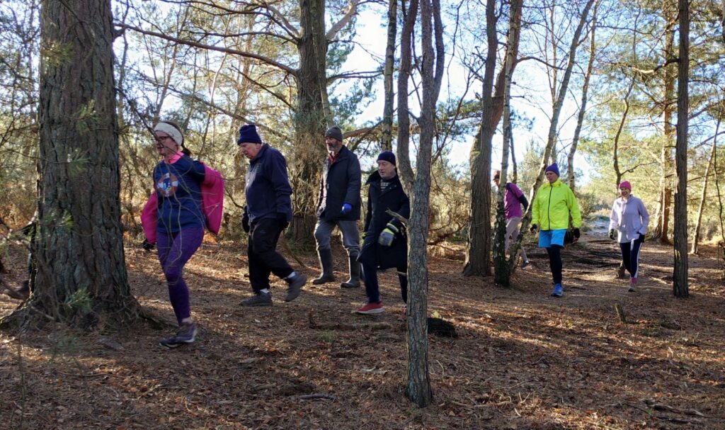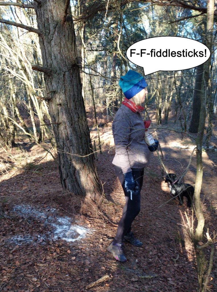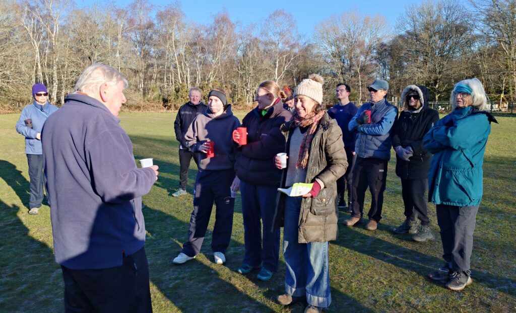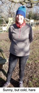 There were many colds evident with lots of sneezing and wheezing and boy was it cold although that falling mercury did not prevent the wearing of shorts by Satisfaction Guaranteed and FRB, with the former also omitting even sleeves although as she swims at Frensham Ponds all year round, she is well prepared. Stevie Blunder wore his new jeans ( a Xmas present?) so just as well he didn’t go A over T as many nearly did on the icy slippery bits.